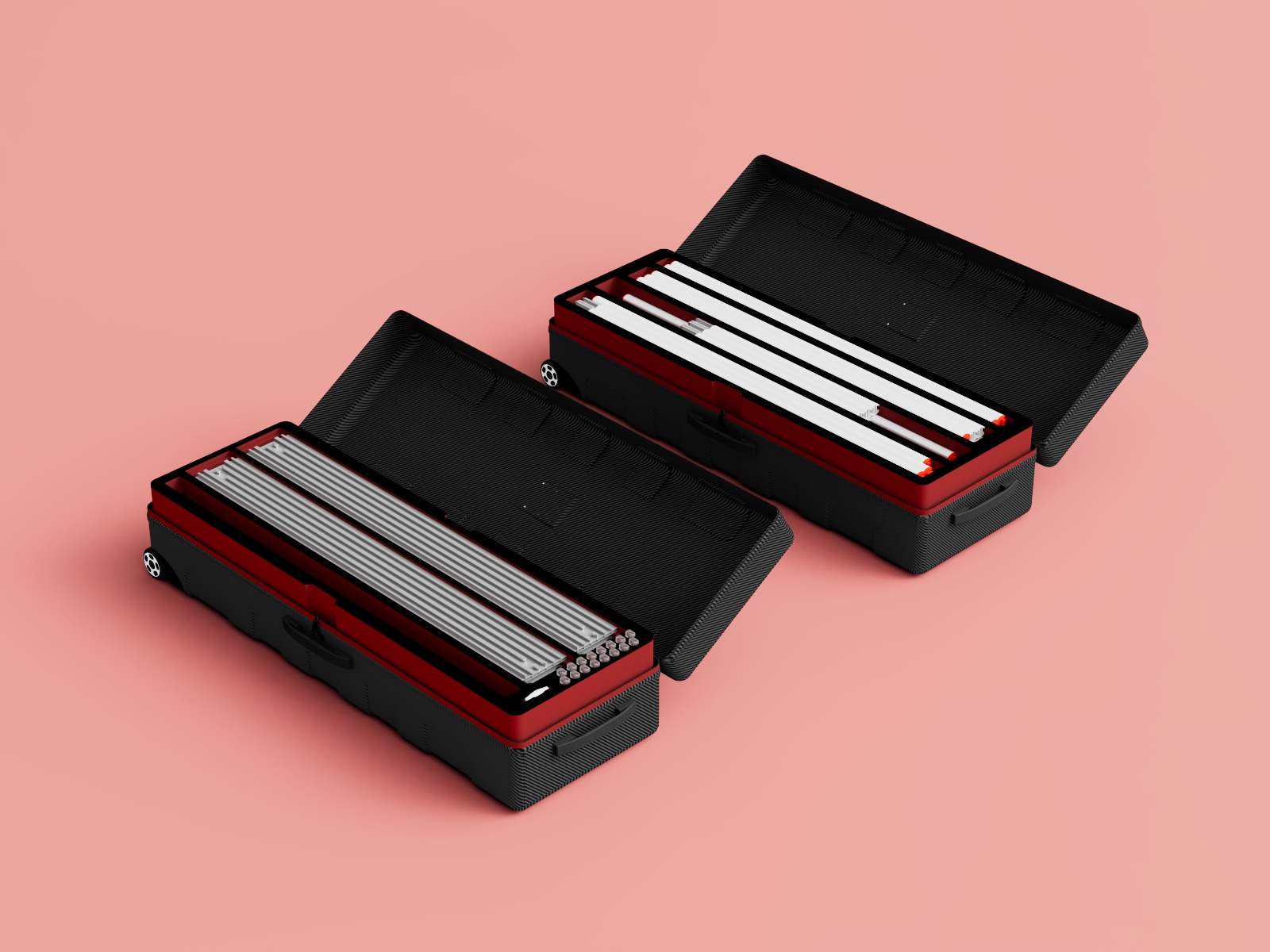 BIG UP™ is packed in a handy ABS hard shell case just 1.2 metres in length, making it easy to transport in any passenger car or, in conjunction with other systems, on a cost-effective Euro pallet. Each part is uniquely numbered, which makes it easy to locate its dedicated place inside the hard shell case. For added protection, the case is equipped with foam inserts. At just 32 kg, BIG UP™ is lightweight and easy to transport using the castors and handles on the case.
