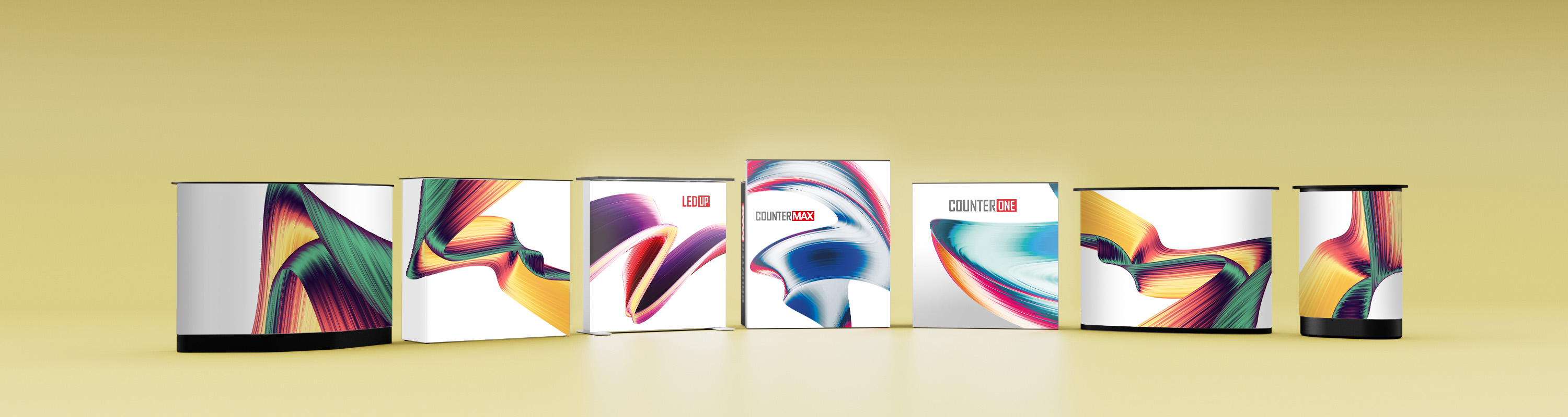 The wrap around graphic panel is secured with a full length Velcro strip, and the panel can be made from laminated PVC. With the addition of the optional foldable counter top, you have a large (76 x 48 cm / 29.9" x 18.9") work space to enhance your productivity at your next event or show.