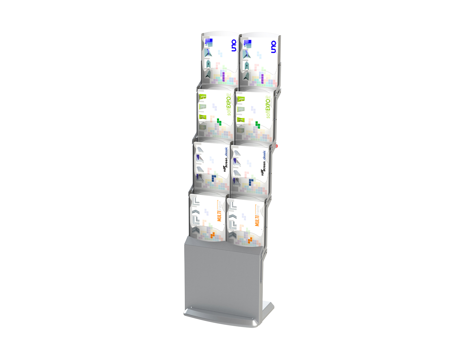 A brochure rack for many promotional activities - show rooms, shops, promotions, fairs, exhibitions, events etc.