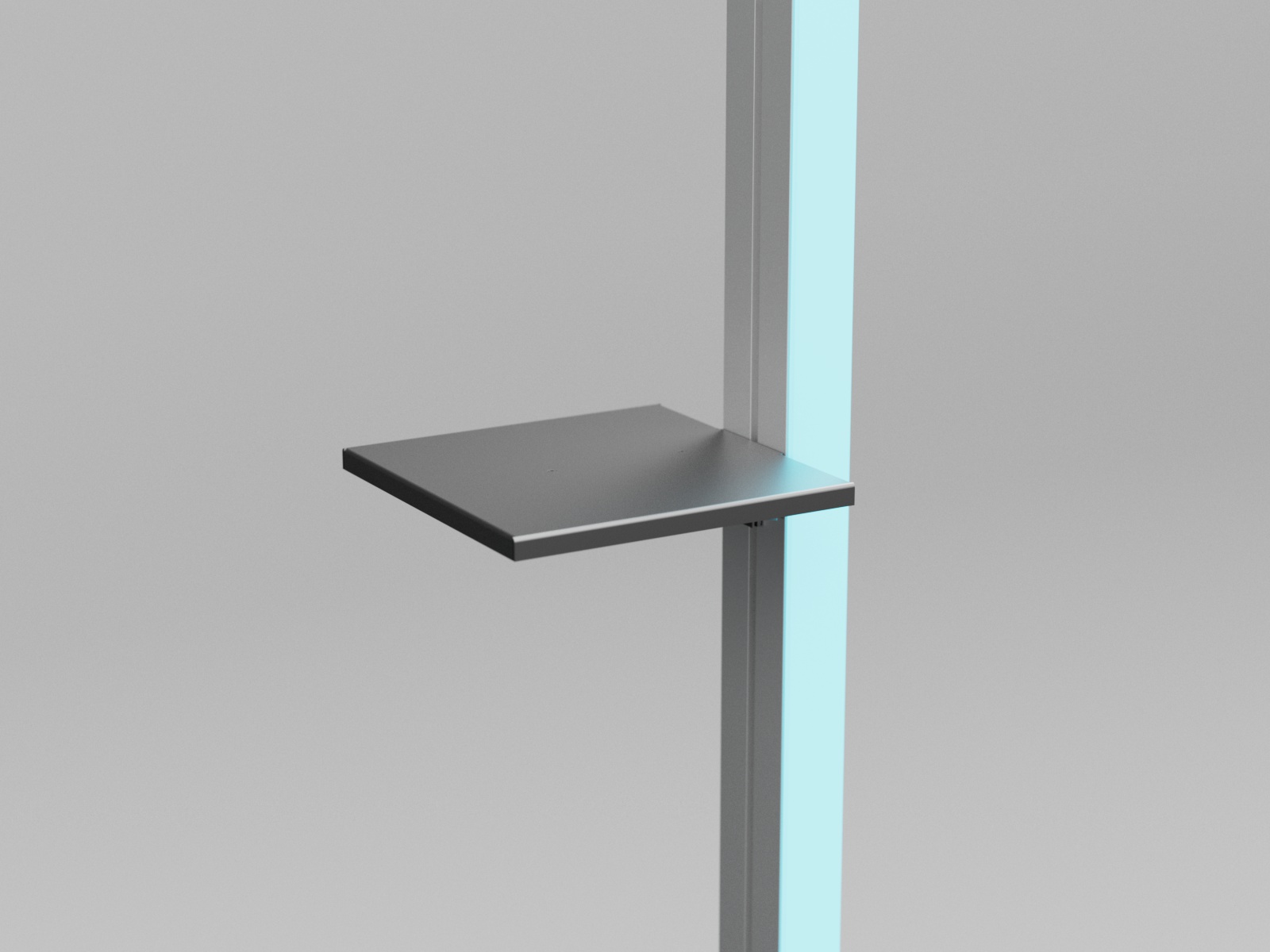Like all LINEUP components, the accessory shelf is designed for easy, tool-free mounting. Simply attach it to your existing frame structure using the modular connector system — no tools or special equipment required.