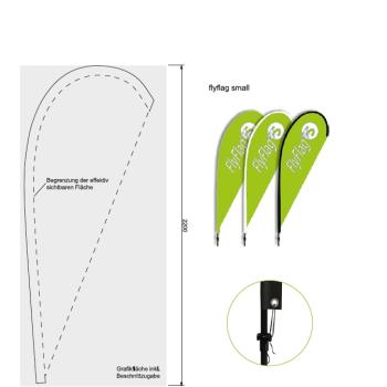 Flyflag (drop shaped) - band with graphic print or black and white bands are available.