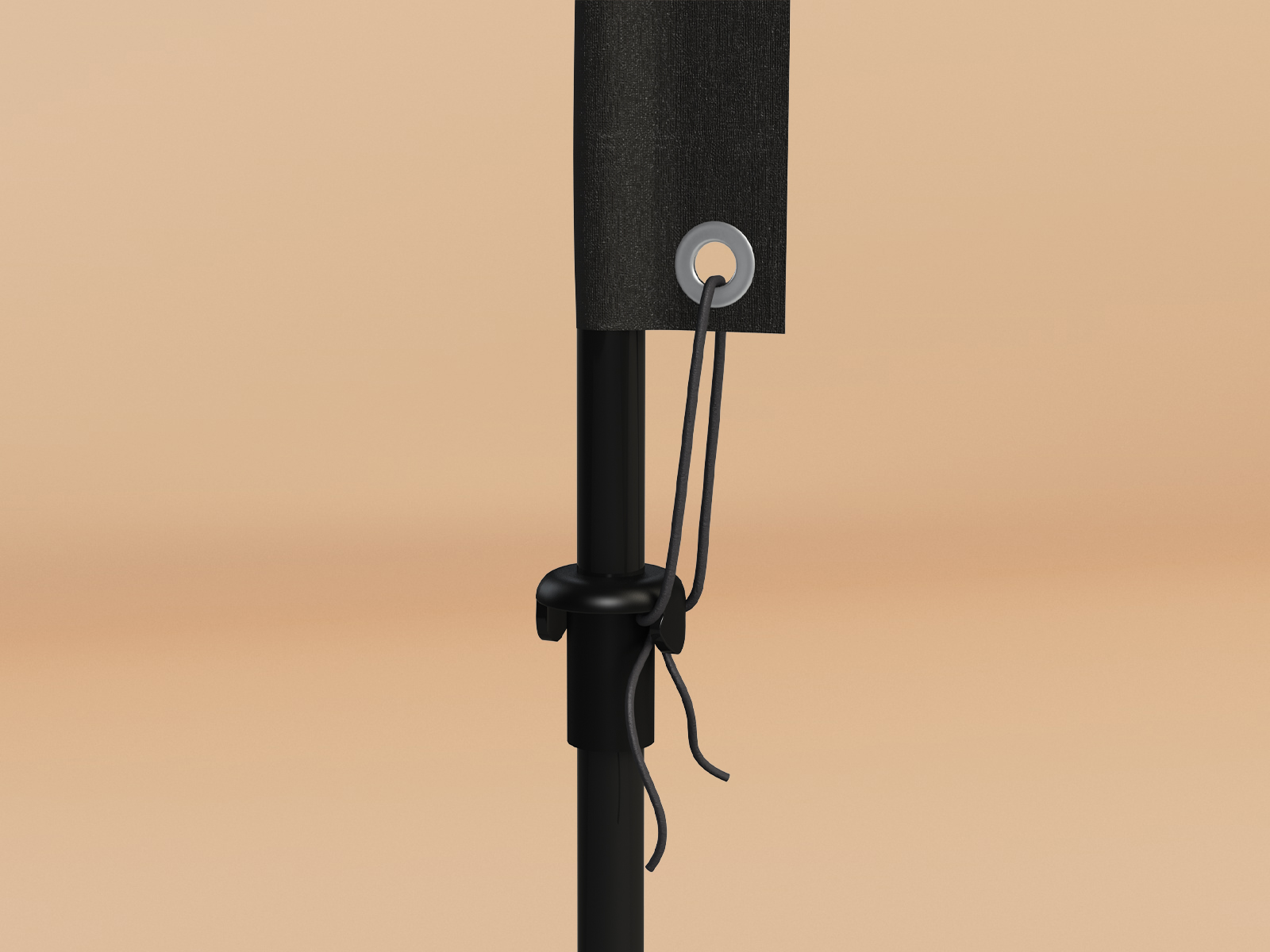 The flag is pulled over the system rods and hooked to the pole (carabiner).