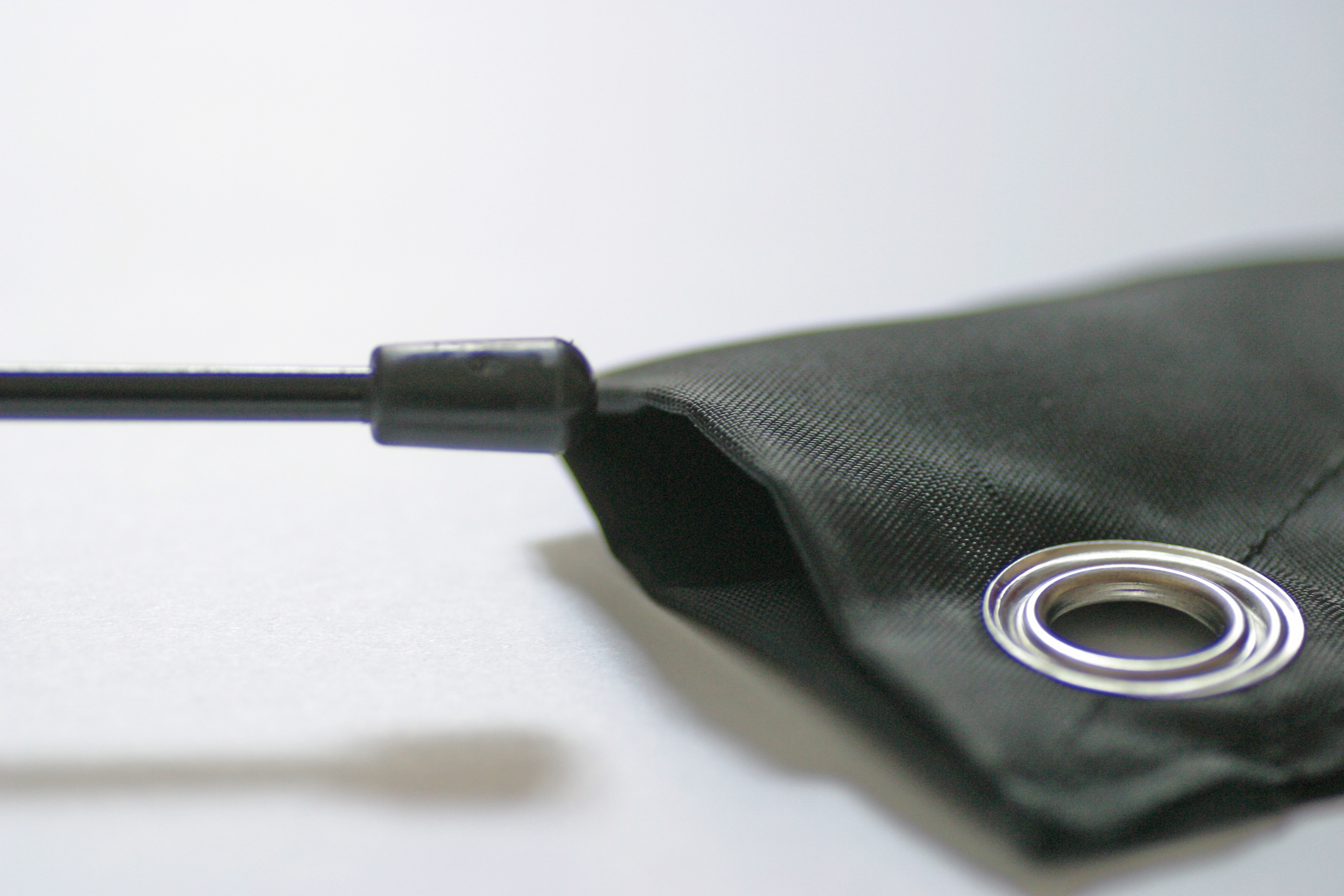 Put the system rods together, pull the flag over the rods and fix the flag to the rod (carabiner). Now put the flag pole into the base of your choice.