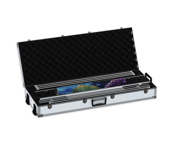 The portable system light column is delivered in an aluminium transport case with wheels (flight case).