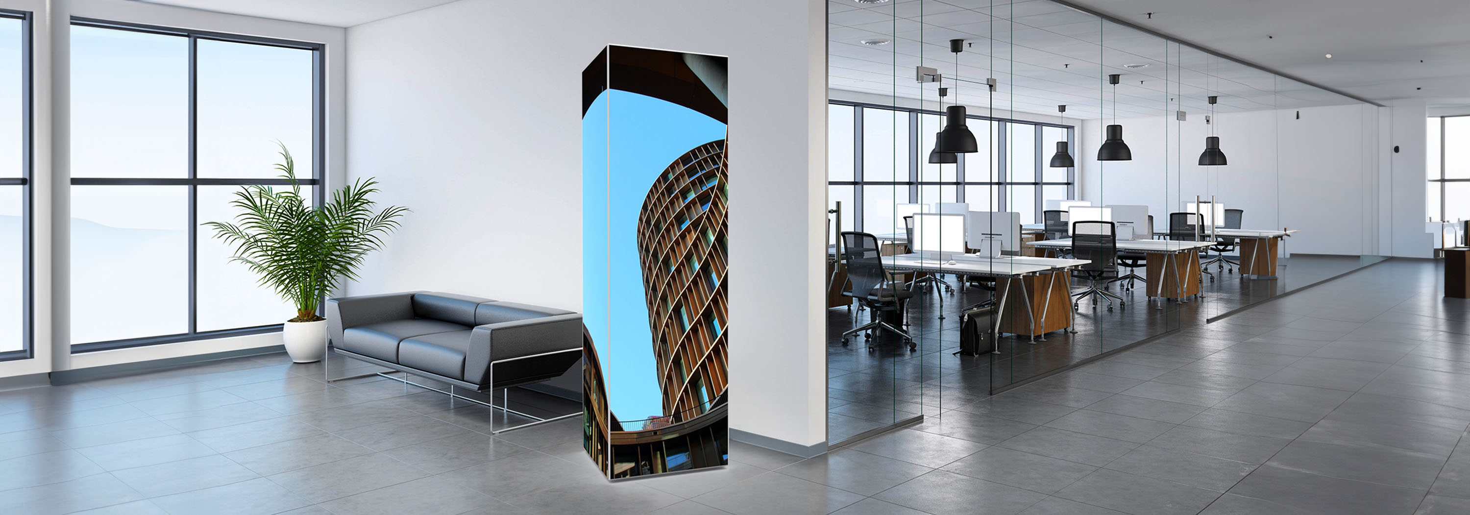 Multi tower 3D allows you to cover columns all around. It therefore creates an impressive advertising area which gets even more impressive when it is LED backlit.